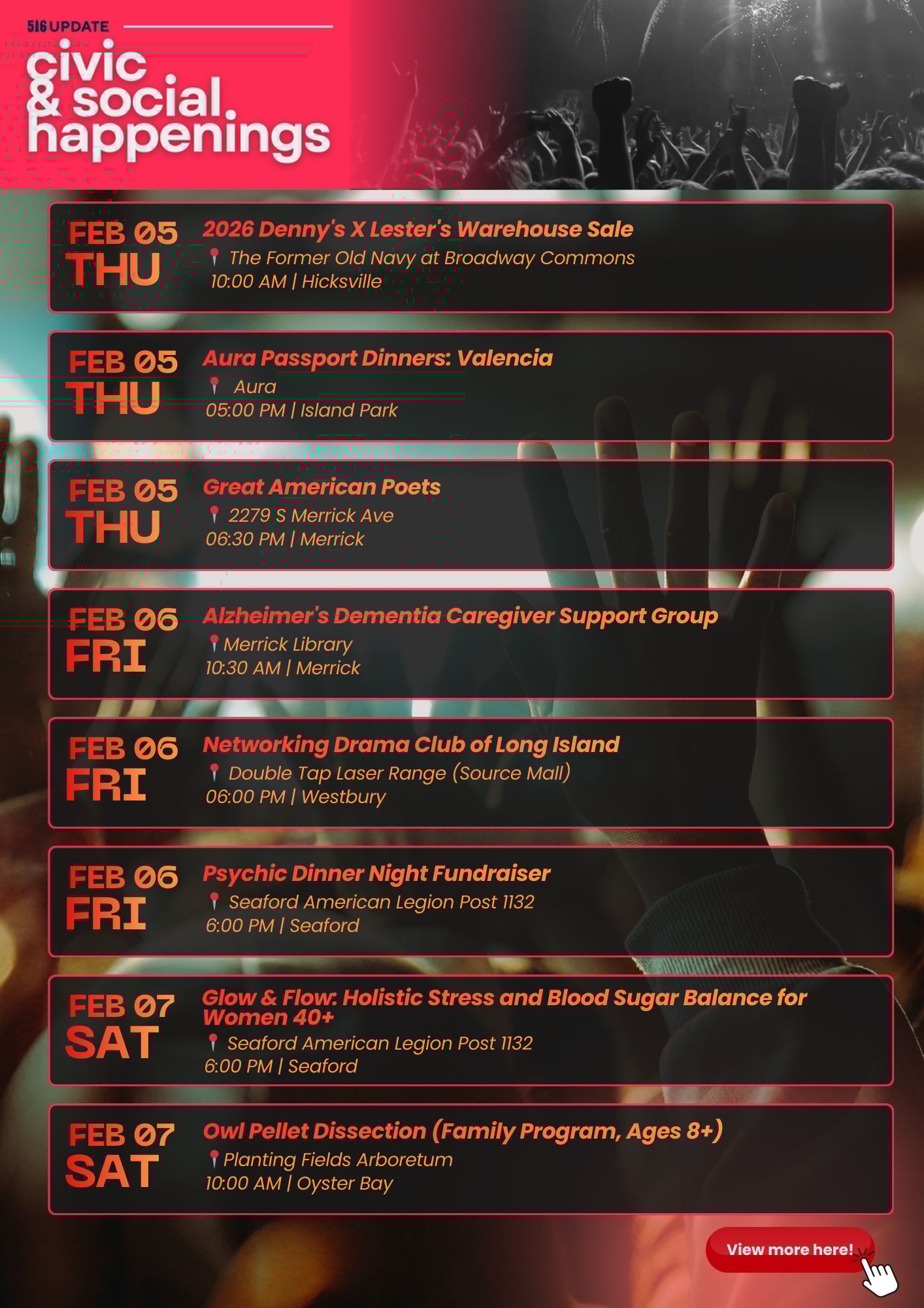 As the weekend starts to come into focus, new updates continue to roll in across Nassau County. Today’s issue highlights what’s unfolding locally and what you may want to plan around, whether you’re looking ahead a few days or just staying informed.