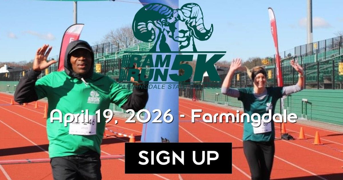 Farmingdale Ram Run 5K Run/Walk Farmingdale State College - Nold Athletic Complex 9:00 AM | Farmingdale Runners and walkers join a campus 5K focused on fitness and community participation. | ![]() |