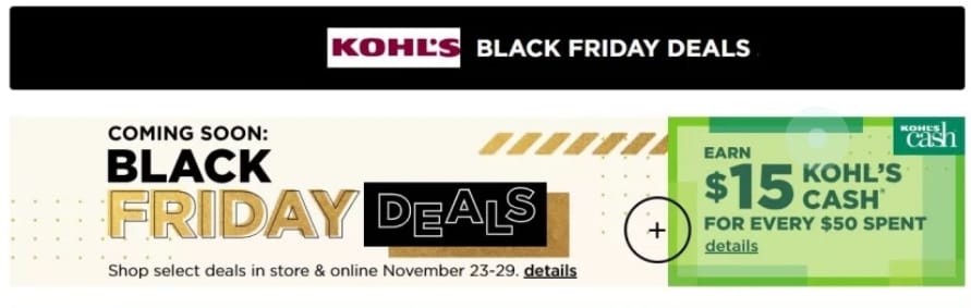 | 🛍️ Kohl’s – Black Friday Deals + Kohl’s Cash 🟡 Big savings. Bigger rewards. Black Friday Deals available Nov 23–29 Shop in-store or online Earn $15 in Kohl’s Cash for every $50 spent Combine discounts with reward cash for even deeper savings