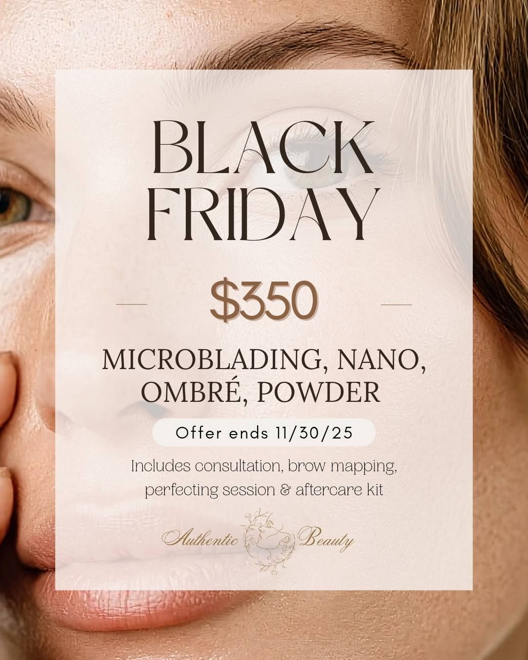 | 💫 Authentic Beauty – Black Friday Brow Deal 🖤 All brow styles just $350 (Microblading, Nano, Combo, or Ombré) ✨ Includes: • Full consultation • Brow mapping • Perfecting session • Aftercare kit 📅 Offer ends November 30, 2025 🚫 By appointment only – no walk-ins |