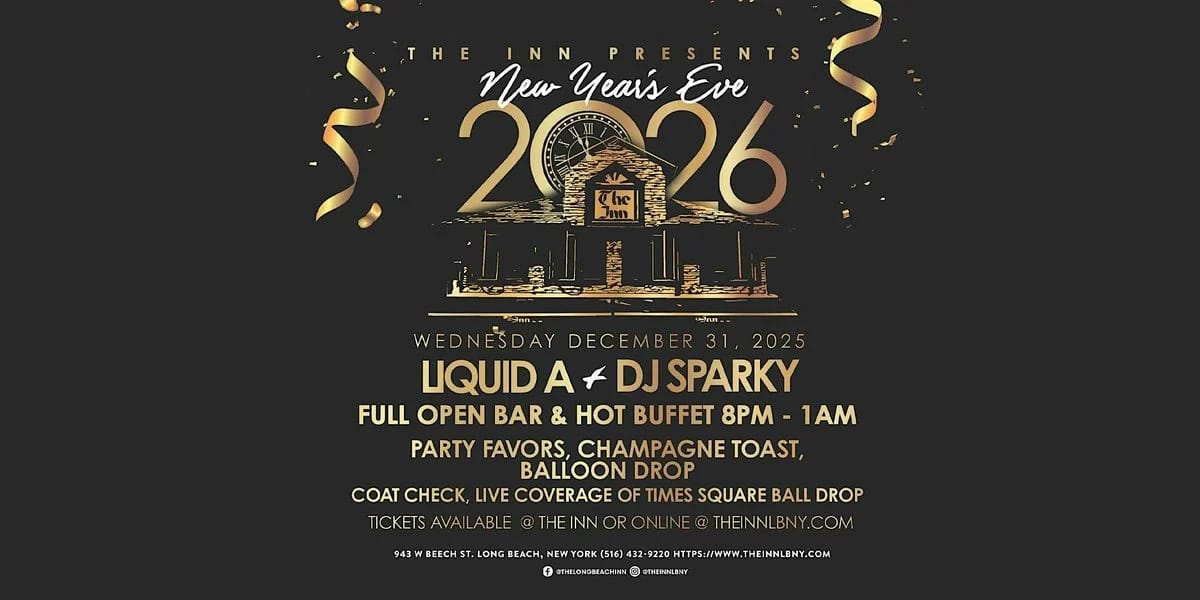 ![]() | New Year’s Eve Bash at The Inn Ring in 2026 with live music by Liquid A and DJ Sparky, a full open bar, hot buffet, balloon drop, champagne toast, and nonstop dancing across multiple floors. |