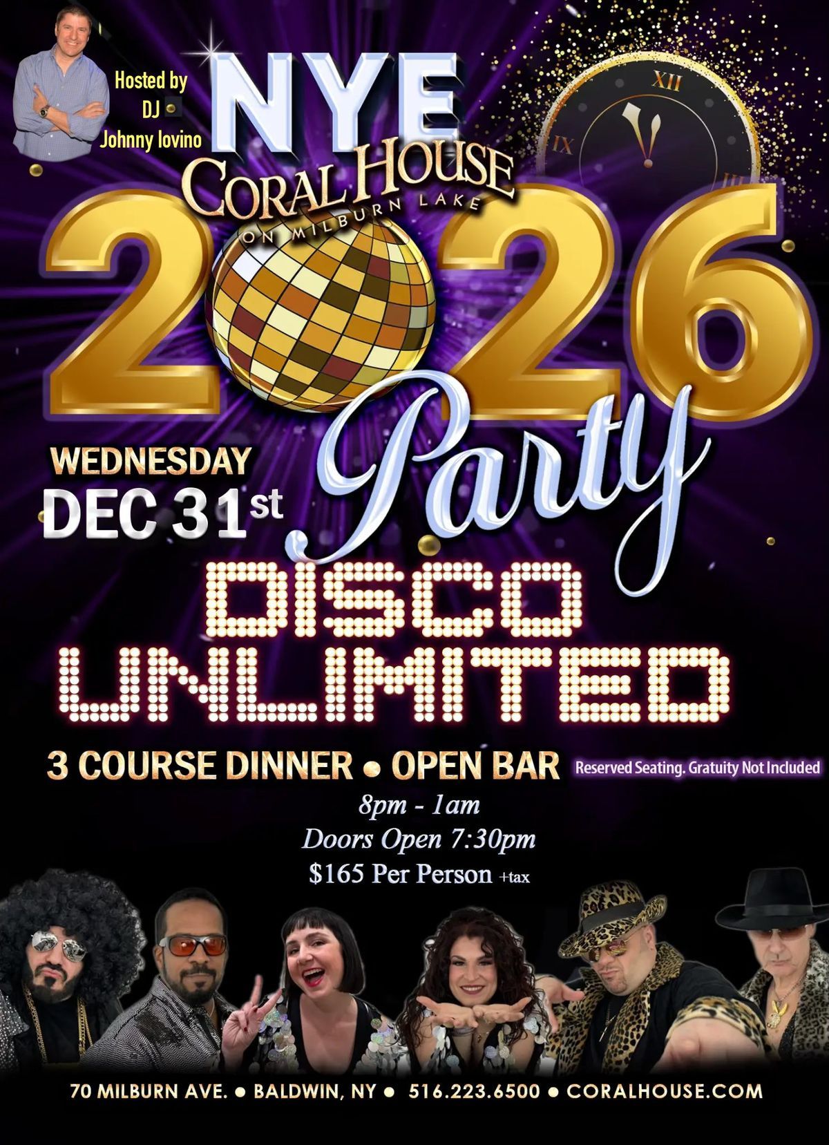 ![]() | Disco Unlimited New Year’s Eve Party Ring in 2026 with Disco Unlimited and DJ Johnny Iovino at this high-energy New Year’s Eve dinner dance, featuring a three-course dinner, open bar, and reserved seating. Doors open at 7:30 PM, with festivities running through 1:00 AM. |