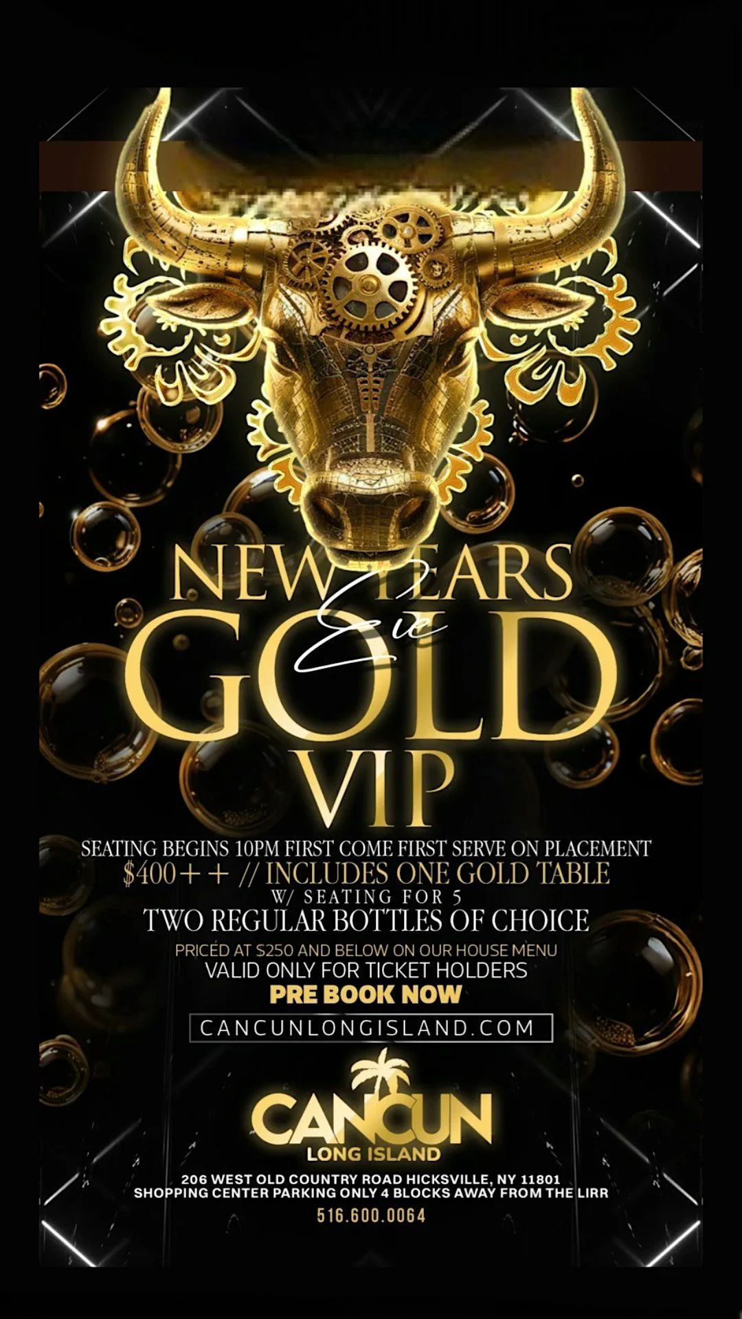 ![]() | New Year’s Eve Open Bar & After Party at Cancun Long Island Ring in 2026 with premium open bar, Italian fusion buffet, live DJs, champagne toast at midnight, and an after-party until 4 AM. |