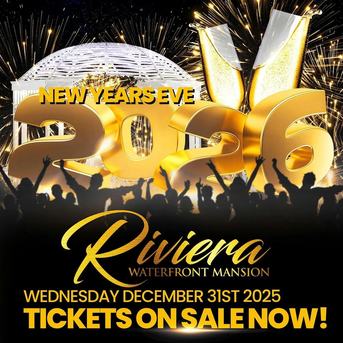![]() | New Year’s Eve 2026 at Riviera Waterfront Mansion Ring in 2026 with a nightclub-style New Year’s Eve party featuring nonstop dancing, live DJ, saxophonist and drummer, open bar, buffet, champagne toast, and ball drop. |