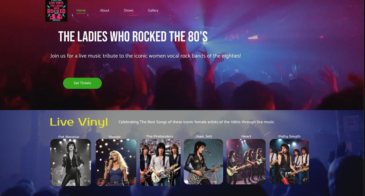 ![]() | Ladies Who Rocked the 80’s Live music tribute celebrating iconic female rock artists of the 1980s, featuring classic hits performed by Live Vinyl. |