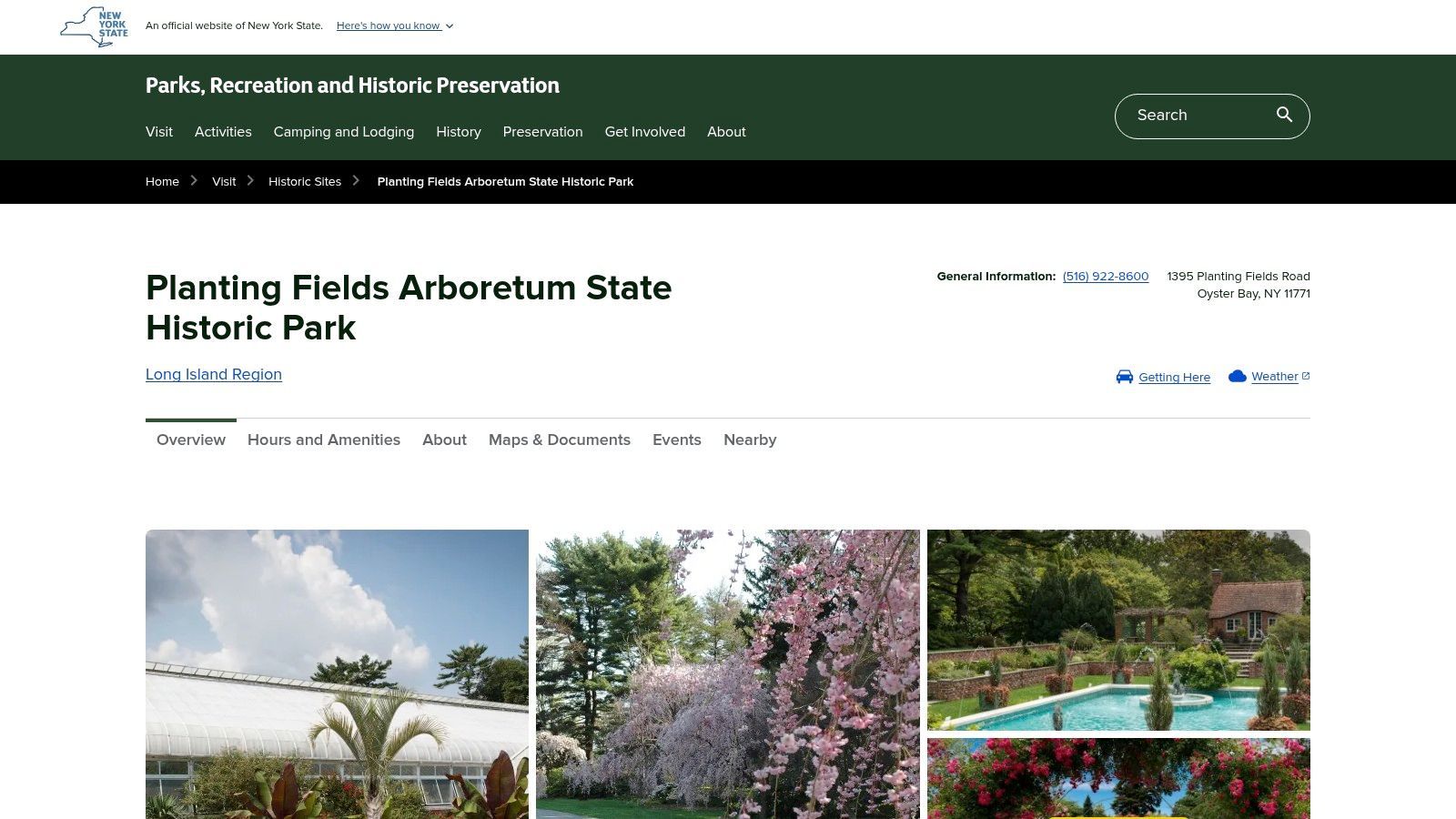 Directions & Parking: The entrance is at 1395 Planting Fields Road in Oyster Bay, Nassau County. Follow the signs from local parkways. Ample free parking is available in several lots across the property once you are past the entry gate.