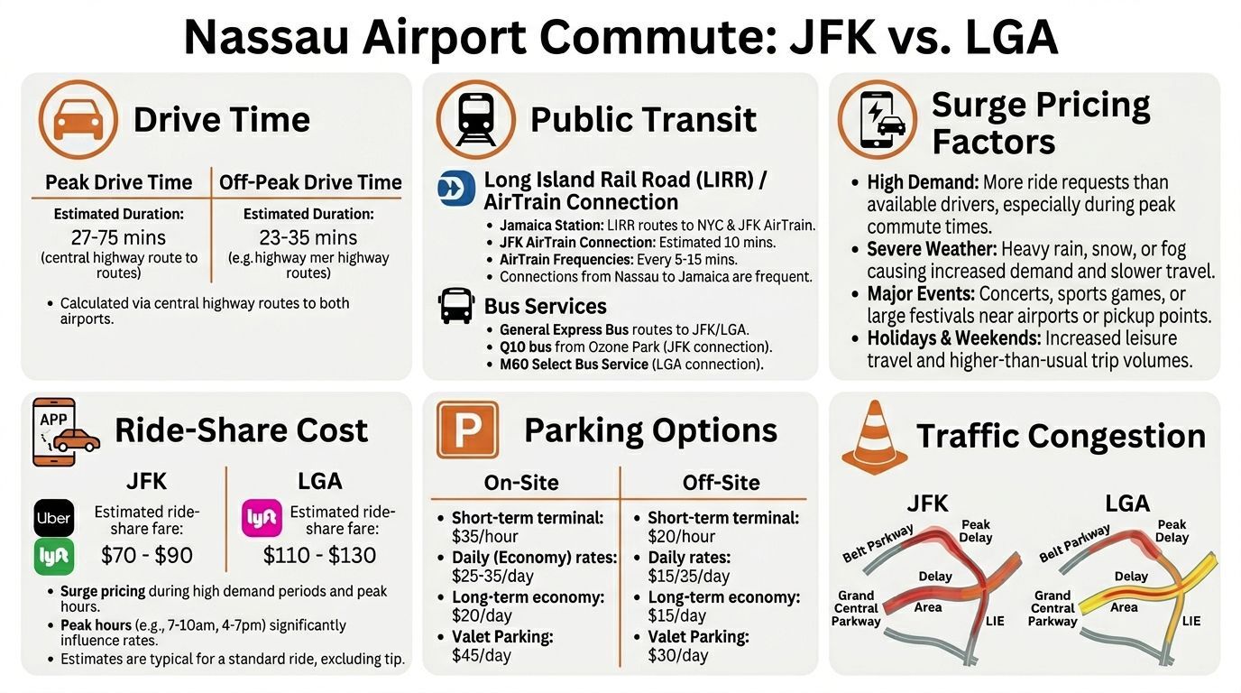 Nassau County residents: Stop debating JFK or LGA. Our guide compares drive times, LIRR/bus, costs, & amenities to pick your best airport.