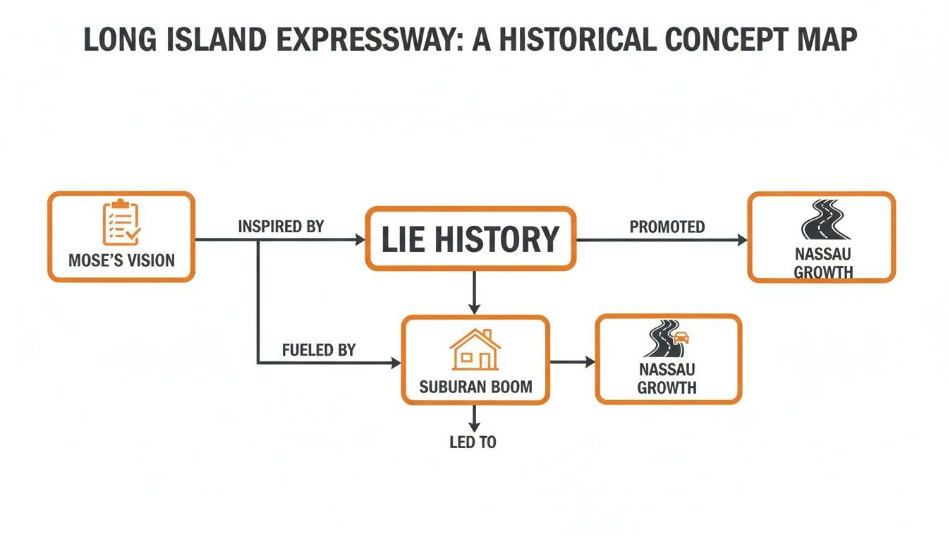 The LIE we know today didn't just appear overnight. It was the result of a massive post-war boom and the vision of planners like Robert Moses. This map gives you a great visual of how those forces shaped the very road we drive on.