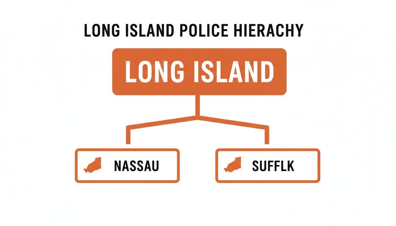 The diagram below gives you a quick visual of how law enforcement is structured across Long Island's two counties.