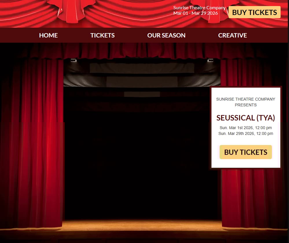 ![]() | Seussical (TYA) A family theater performance based on beloved Dr. Seuss characters and stories. |