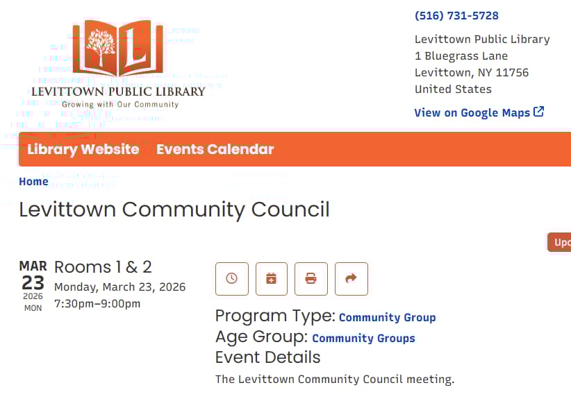 ![]() | Levittown Community Council Community meeting to connect with local issues, initiatives, and neighbors. |