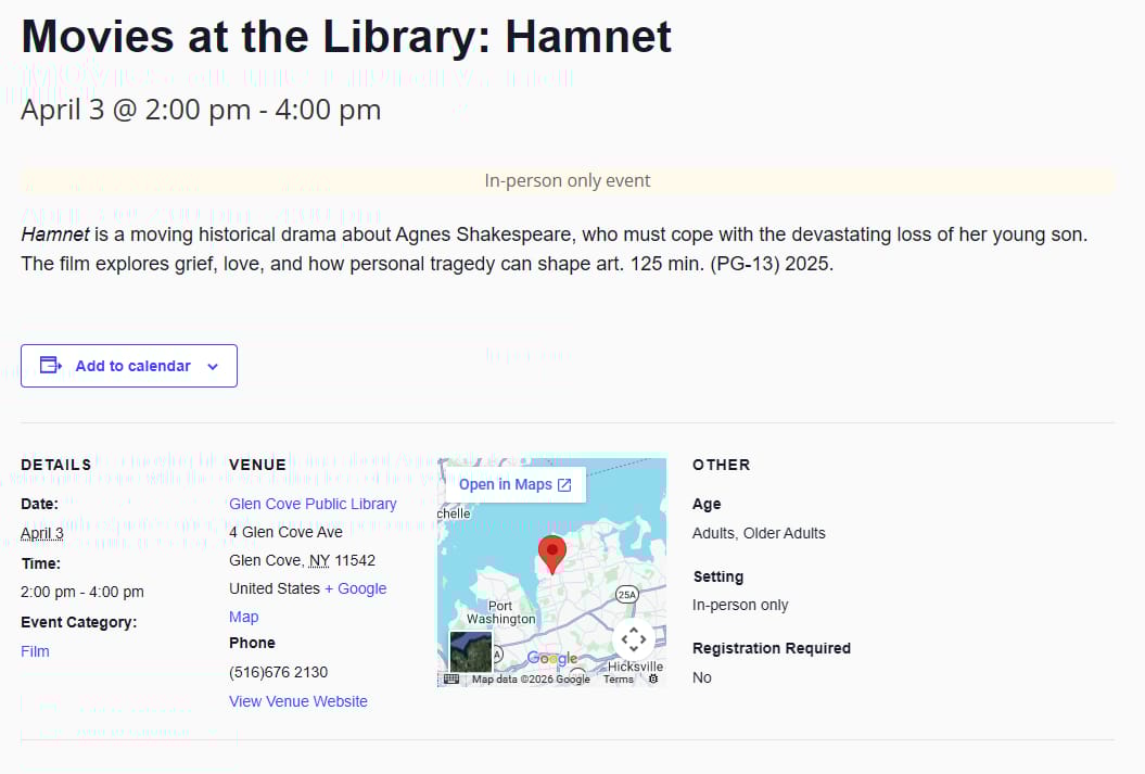 ![]() | Movies at the Library: Hamnet |