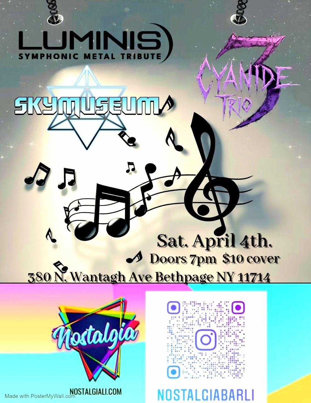 ![]() | Luminis, Cyanide Trio, Sky Museum A multi-band rock bill with three acts and advance tickets available for a Saturday night show. |