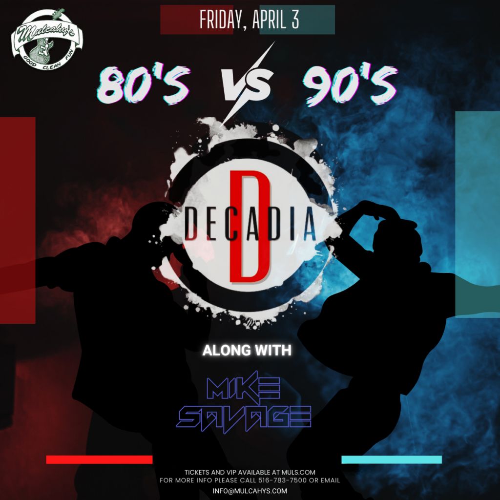![]() | 80’s vs 90’s Night feat. Decadia & DJ Savage A throwback dance party packed with 80s and 90s hits, live music energy, and DJ Savage on deck. |
