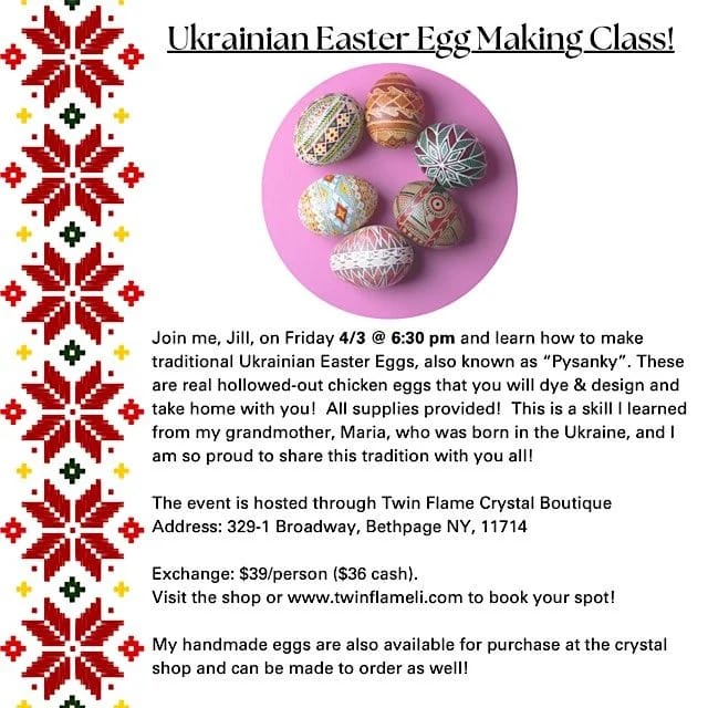 ![]() | Ukrainian Egg Decorating Class 06:30 PM | Bethpage |