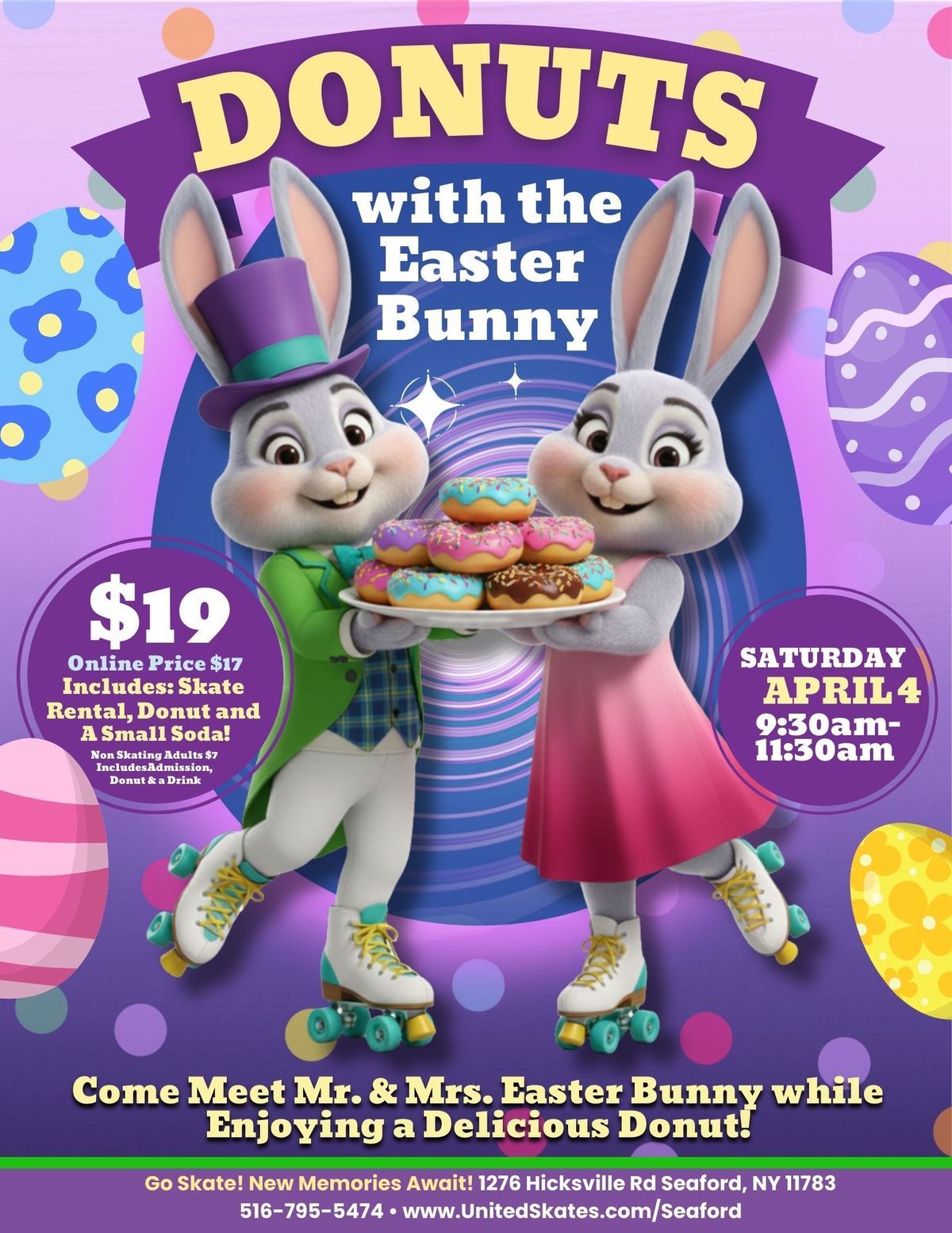![]() | Donuts with the Bunny Meet Mr. and Mrs. Easter Bunny while enjoying skating, donuts, and a small soda in a festive morning session. |
