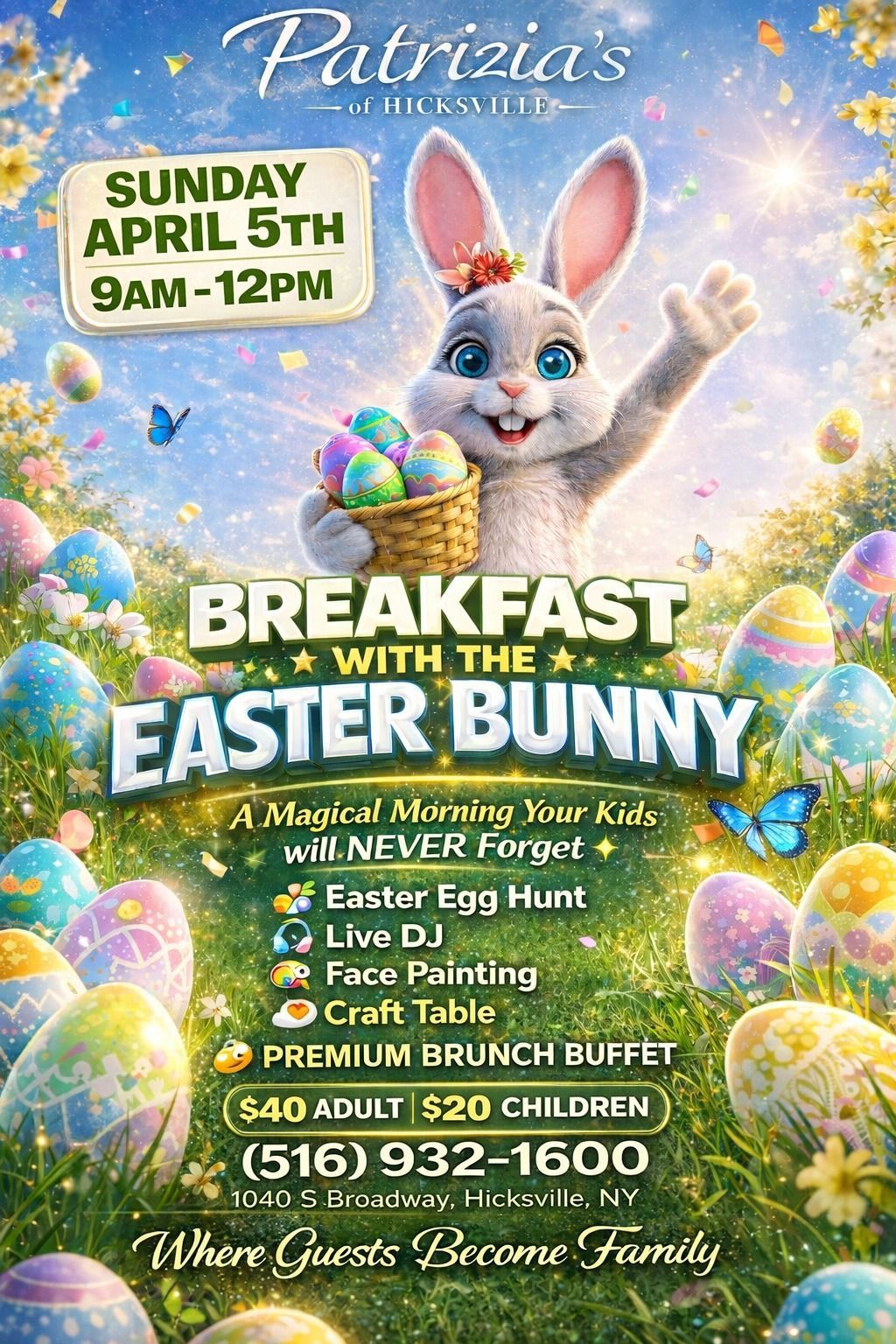 ![]() | Breakfast with the Easter Bunny at Patrizia’s of Hicksville A premium brunch buffet with an egg hunt, live DJ, face painting, crafts, and Easter Bunny photos. |