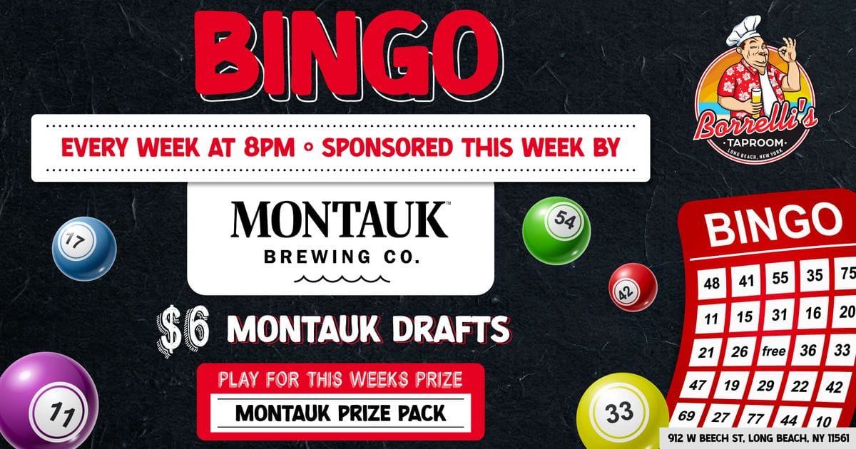 ![]() | Bingo - Montauk Brewing Co. Weekly bingo night with Montauk drafts on special and a branded prize pack up for grabs. |