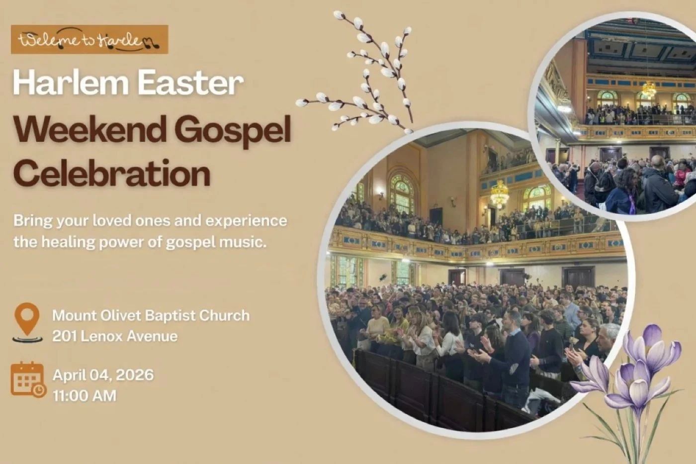 ![]() | Harlem Easter Weekend Gospel Celebration An uplifting Easter gospel concert featuring live performers, beloved hymns, and a strong community spirit. |