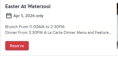 ![]() | Easter Sunday Celebrate Easter Sunday with an a la carte dinner menu and chef’s specials starting at noon. |