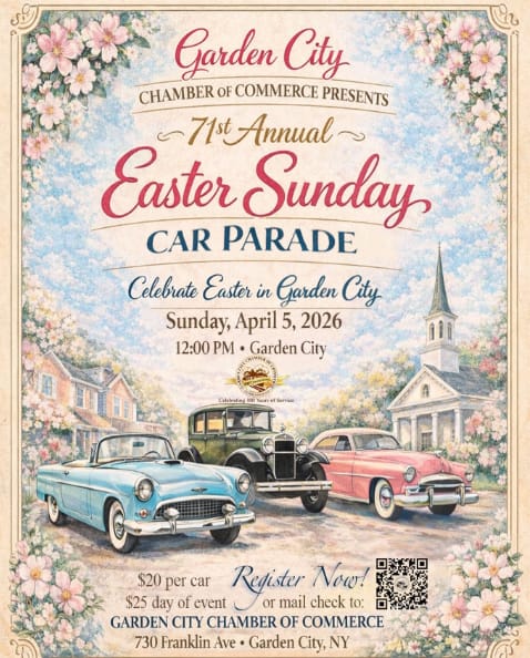![]() | 2026 Easter Car Parade A long-running Garden City tradition with vintage cars, costumes, and neighborhood turnout. |