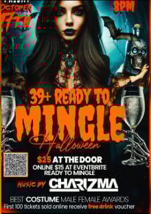 ![]() | 39+ Ready to Mingle Halloween Bash Dance, mingle, and celebrate Halloween at this 39+ bash featuring DJ Charizma, costume contests, and nonstop fun. Costumes are encouraged, with prizes for the best dressed, plus drink specials and plenty of opportunities to meet new people. |