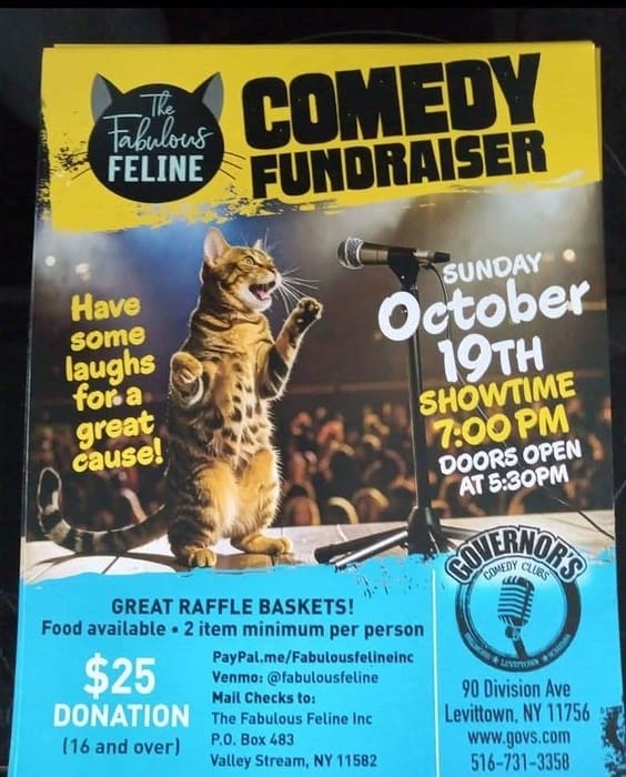 ![]() | Comedy Fundraiser for the Fabulous Feline Rescue Laugh for a cause at this comedy fundraiser benefiting The Fabulous Feline Rescue. Enjoy a night of comedy, raffles, and great food while supporting a local 501(c)(3) rescue organization. |