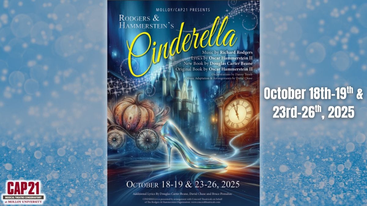 ![]() | Molloy CAP21 Presents: Rodgers & Hammerstein’s Cinderella Experience the timeless magic of Cinderella with Molloy University CAP21’s Program, featuring stunning performances, enchanting music, and a fresh twist on the classic fairytale. |