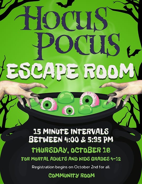 ![]() | 🧸 Kid-Friendly Children’s Costume Drop & Shop Swap outgrown costumes for new dress-up finds at the library’s Children’s Room. A fun, sustainable way to get ready for spooky season! |