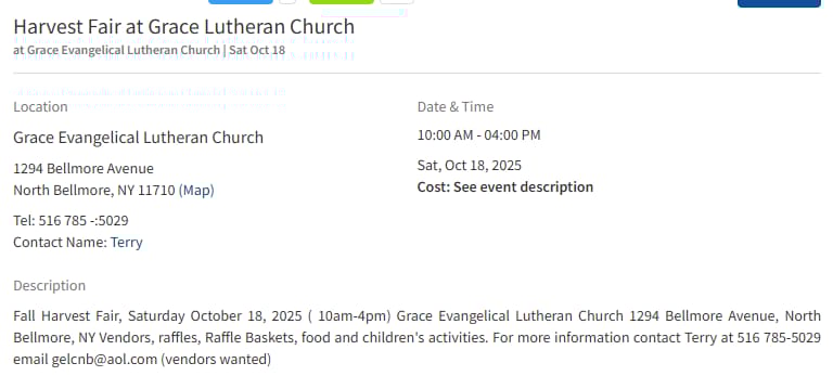 ![]() | 🧸 Kid-Friendly Harvest Fair at Grace Lutheran Church Enjoy a festive fall fair with vendors, raffles, food, and children’s activities at Grace Lutheran Church. |