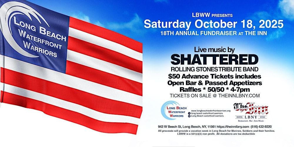 ![]() | Long Beach Waterfront Warriors Fundraiser with Shattered Support the Long Beach Waterfront Warriors at their 18th Annual Fundraiser featuring live music by Shattered, a Rolling Stones tribute band. Enjoy an open bar, passed appetizers, raffles, and a 50/50 while giving back to a great cause. |