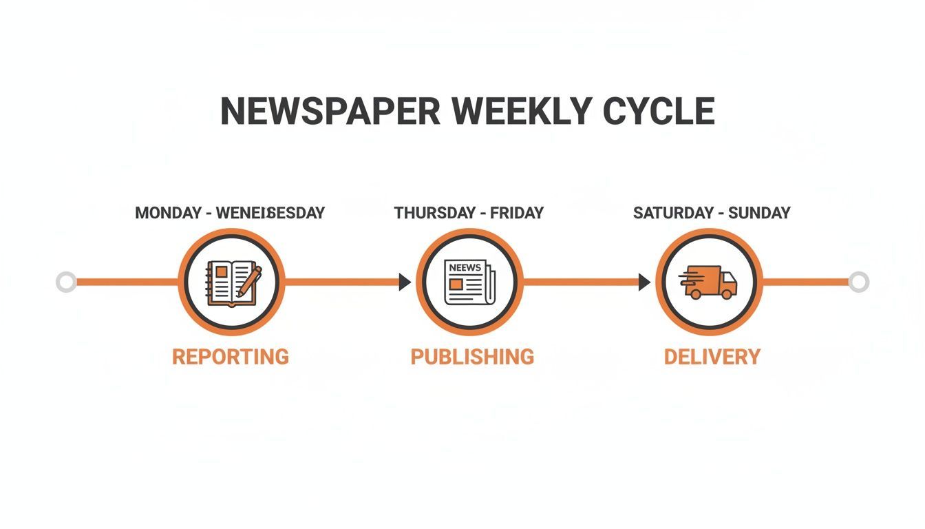This cycle of reporting, publishing, and delivering has been the heartbeat of local information for generations, ensuring the community stays connected week in and week out.