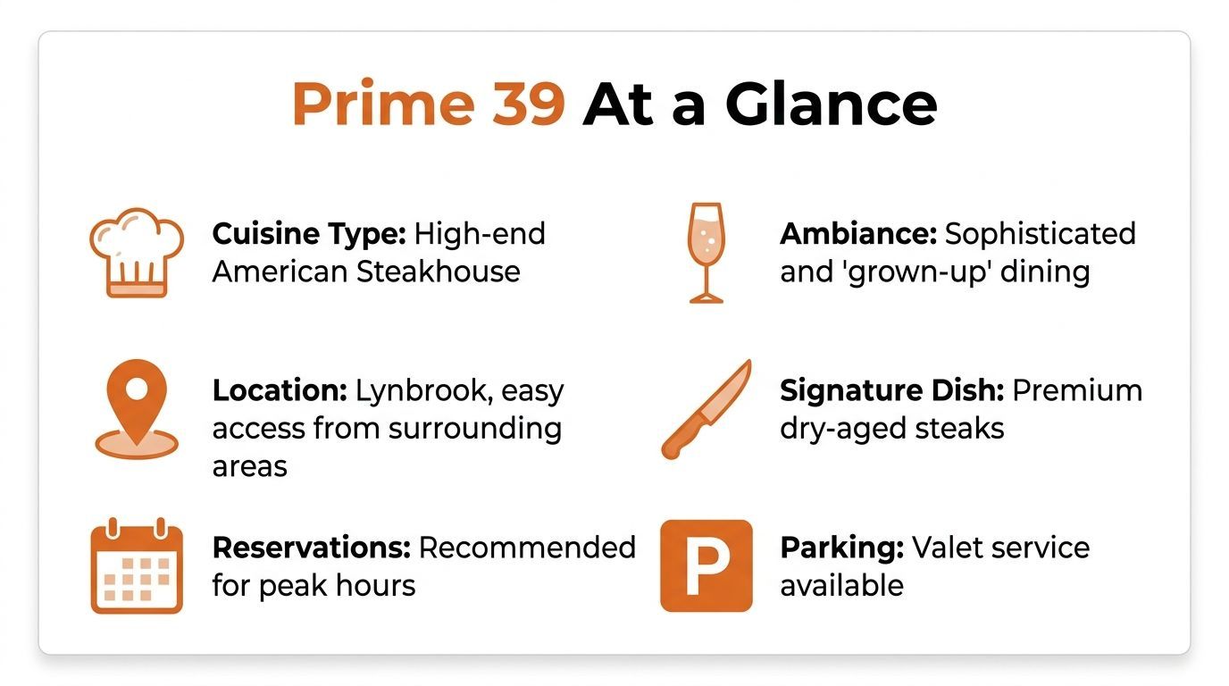 Your complete guide to Prime 39 Lynbrook. Discover menu highlights, hours, parking tips, and whether this acclaimed Nassau County steakhouse is right for you.